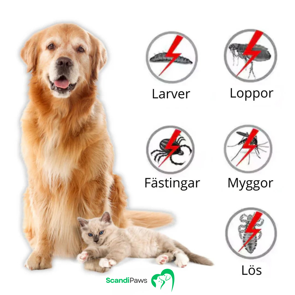 Alla husdjur kommer någon gång under sitt liv att möta dessa envisa skadedjur. Handla nu med en enkel och effektiv lösning för att hålla ditt fyrbenta vän trygg och ditt hem fritt från skadedjur.